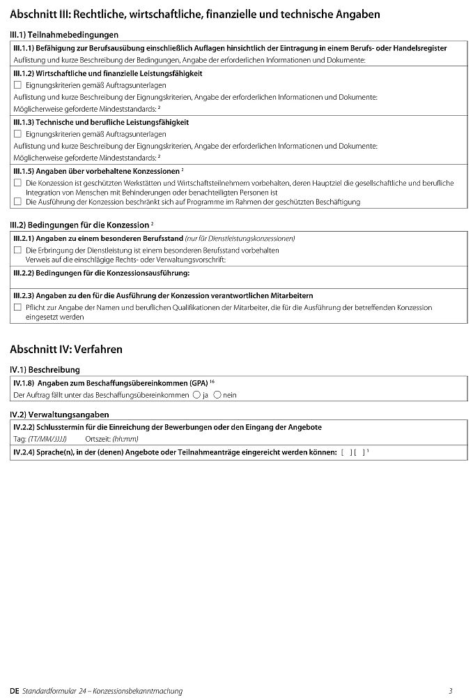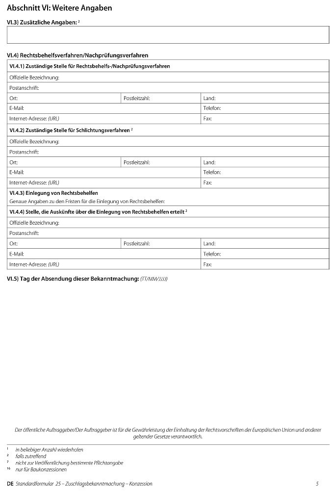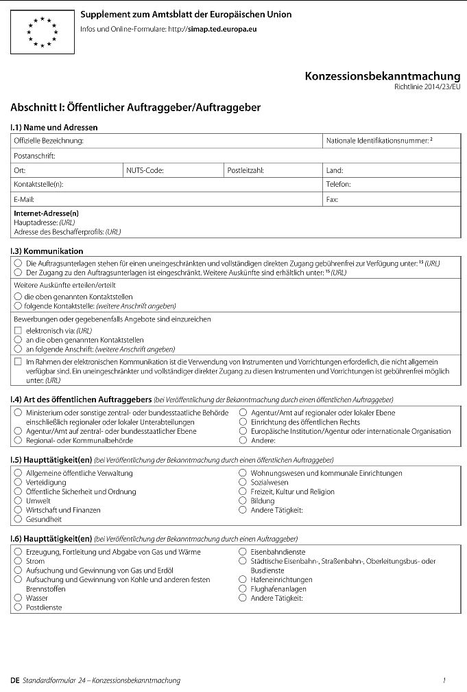 | Standardformular 24: "Konzessionsbekanntmachung" | Anhang XXI |