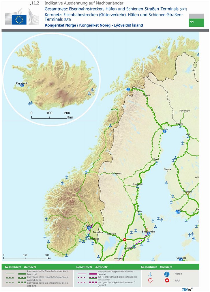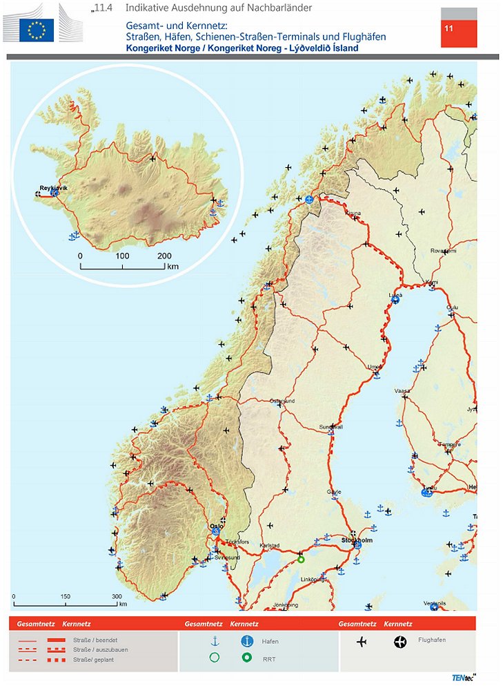(3) Am 30. Oktober 2015 wurde im Rahmen des mit dem Abkommen über den Europäischen Wirtschaftsraum eingesetzten Gemeinsamen Ausschusses eine Vereinbarung auf hoher Ebene zwischen der Union, Island und Norwegen über die Anpassung der Karten über die indikative Ausdehnung des TEN-V-Gesamtnetzes in diesen Ländern erzielt. Die Anpassung betrifft nur wenige Änderungen der Karten des Straßen-, Hafen- und Flughafennetzes dieser Länder und dient dazu, die Auslegung des indikativen TEN-V entsprechend der TEN-V-Methodik 2 besser zum Ausdruck zu bringen.