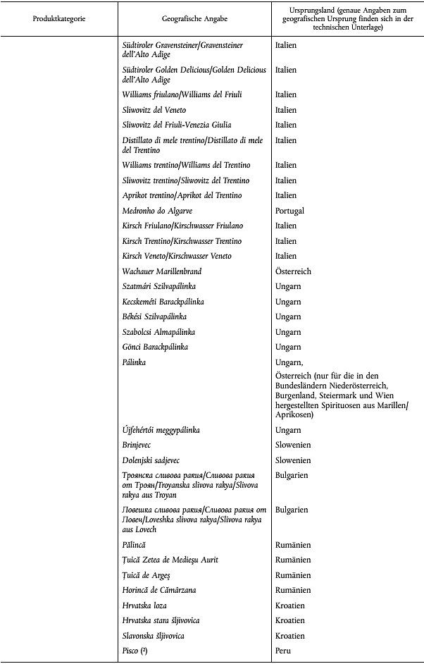 2) Durchführungsverordnung (EU) Nr. 716/2013 der Kommission vom 25. Juli 2013 mit Durchführungsbestimmungen zur Verordnung (EG) Nr. 110/2008 des Europäischen Parlaments und des Rates zur Begriffsbestimmung, Bezeichnung, Aufmachung und Etikettierung von Spirituosen sowie zum Schutz geografischer Angaben für Spirituosen (ABl. Nr. L 201 vom 26.07.2013 S. 21).