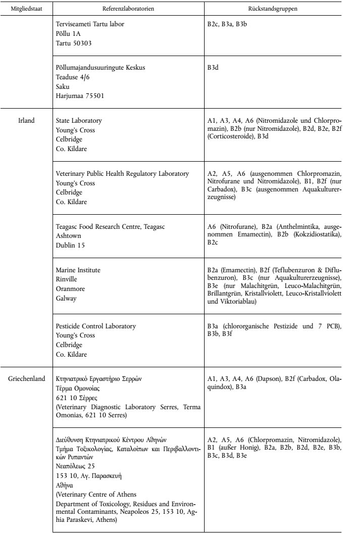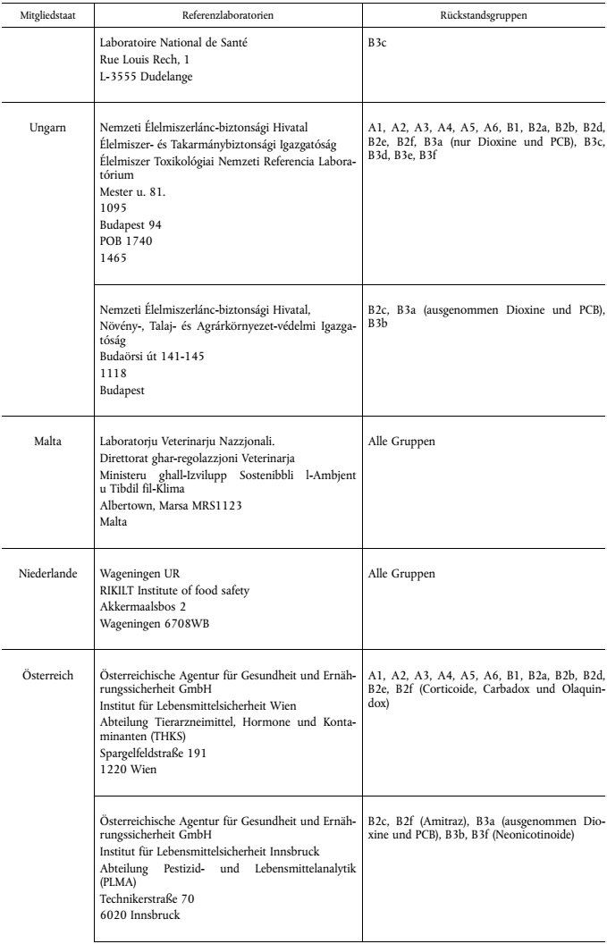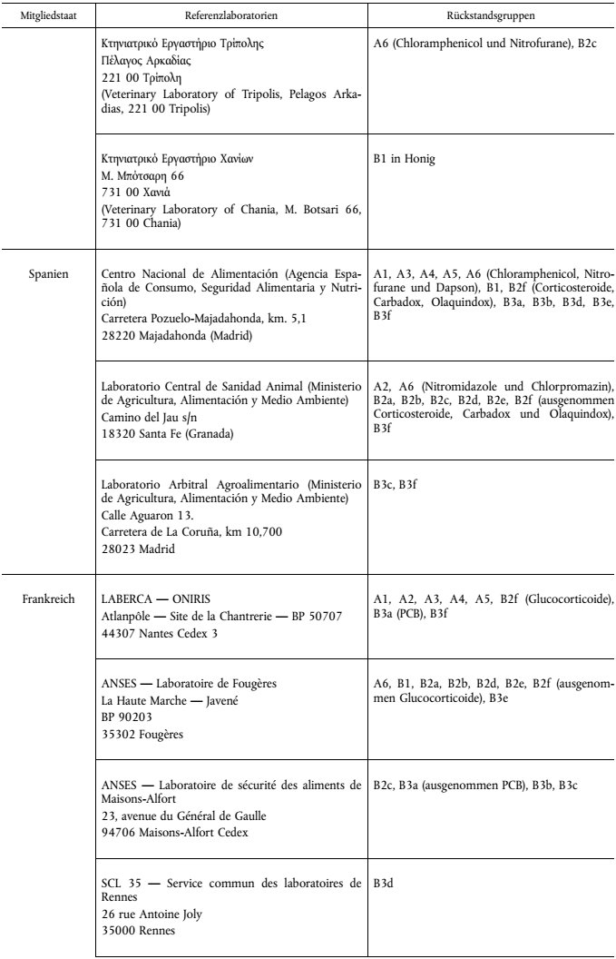 2) Entscheidung 98/536/EG der Kommission vom 3. September 1998 zur Festlegung des Verzeichnisses der nationalen Referenzlaboratorien für Rückstandsuntersuchungen (ABl. Nr. L 251 vom 11.09.1998 S. 39).
