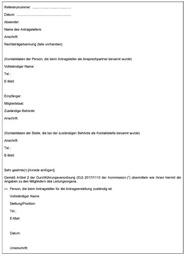 Innerhalb von zehn Arbeitstagen nach Eingang des Antrags übermittelt die zuständige Behörde dem Antragsteller in Papier- oder elektronischer Form oder auf beiden Wegen eine Empfangsbestätigung, die auch die Kontaktdaten der gemäß Artikel 1 benannten Kontaktstelle enthält.