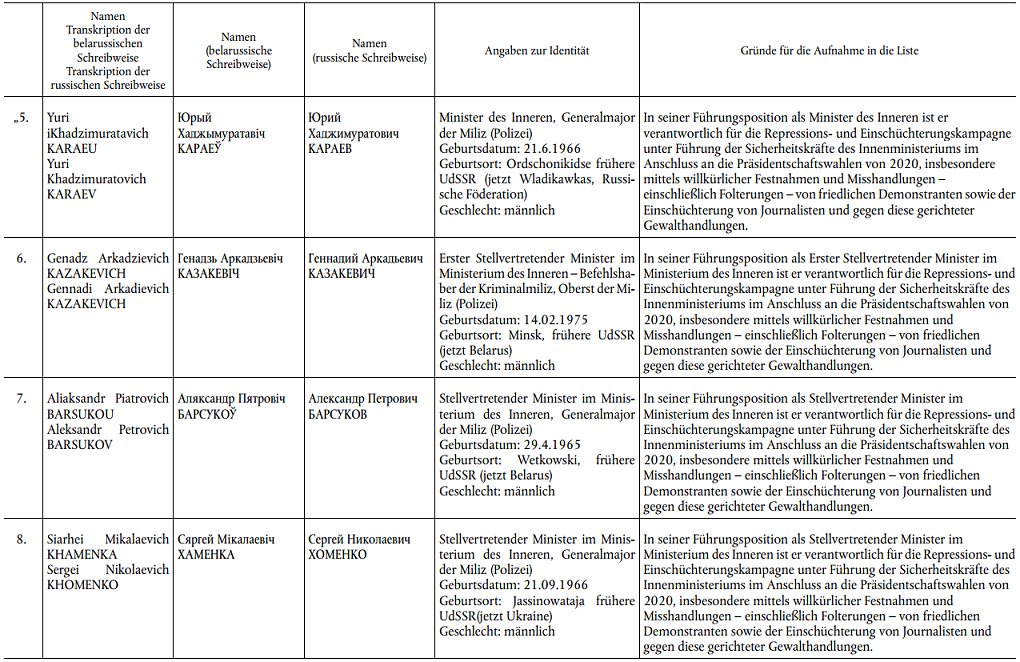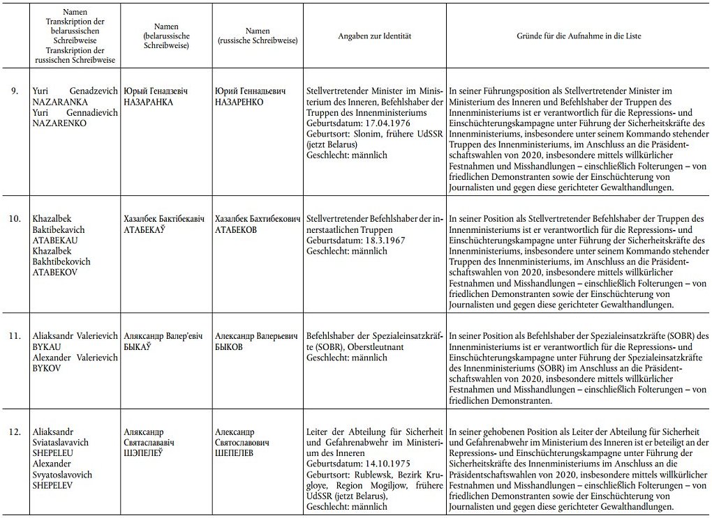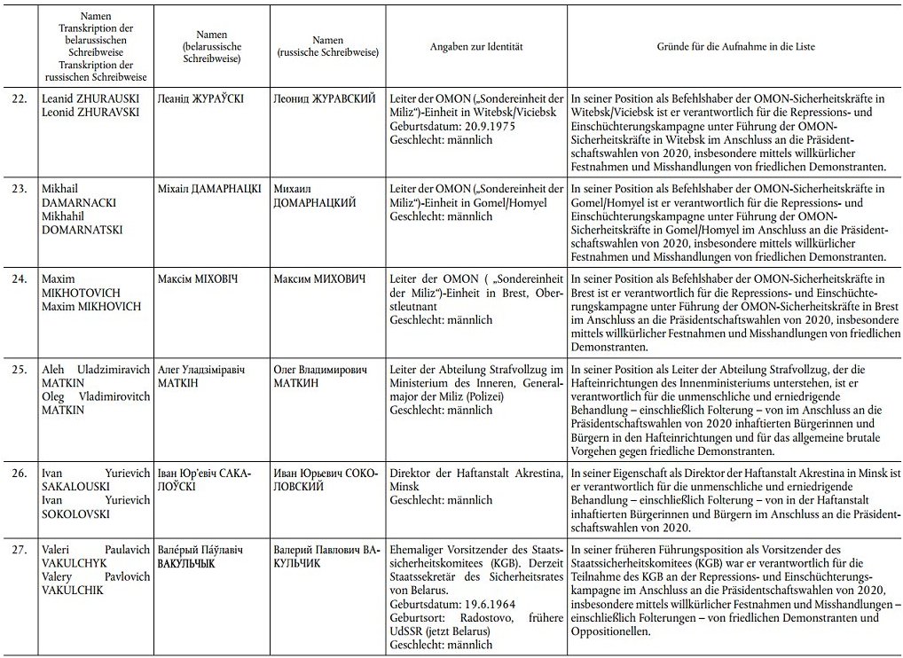 (2) Am 9. August 2020 wurden in Belarus Präsidentschaftswahlen durchgeführt, von denen sich herausstellte, dass sie nicht den internationalen Standards entsprachen und durch Repressionsmaßnahmen gegen unabhängige Kandidaten und ein brutales Vorgehen gegen friedliche Demonstranten im Anschluss an die Wahlen beeinträchtigt wurden. Am 11. August 2020 hat der Hohe Vertreter der Union für Außen- und Sicherheitspolitik im Namen der Union eine Erklärung abgegeben, in der er zu der Bewertung gelangte, dass die Wahlen weder frei noch fair waren. In der Erklärung hieß es ferner, dass Maßnahmen gegen die Verantwortlichen für die Gewaltanwendung, die ungerechtfertigten Festnahmen und die Fälschung der Wahlergebnisse getroffen werden könnten.