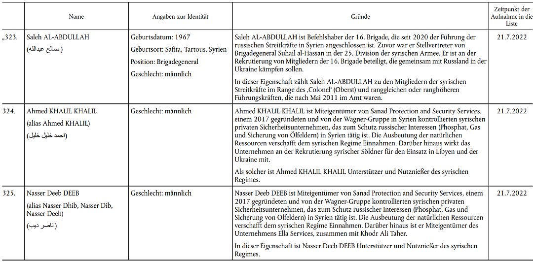 (2) Der Rat ist nach wie vor äußerst besorgt über die Lage in Syrien. Nach mehr als einem Jahrzehnt ist der Konflikt in Syrien noch lange nicht beendet, und das syrische Regime setzt seine Repressionspolitik fort. Ferner leistet das syrische Regime Unterstützung - auch militärische Unterstützung - für die grundlose und ungerechtfertigte militärische Aggression der Russischen Föderation gegen die Ukraine.