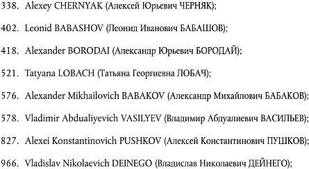 (4) Auf der Grundlage einer Überprüfung der einzelnen Benennungen im Anhang des Beschlusses 2014/145/GASP durch den Rat sollten die Angaben zu 548 Personen und zwei Organisationen aktualisiert werden. Darüber hinaus sollten die Einträge zu zwei Personen und einer verstorbenen Person sowie acht Doppeleinträge aus diesem Anhang gestrichen werden.