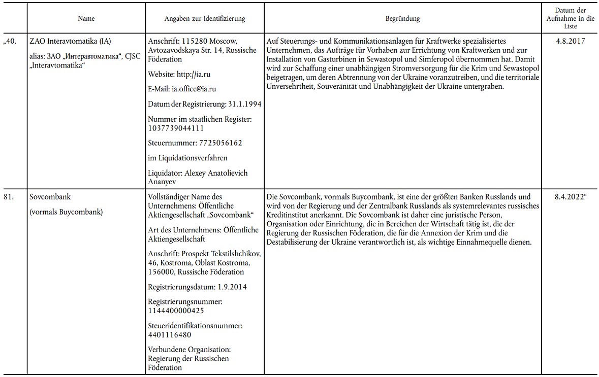 2) Beschluss (GASP) 2022/411 des Rates vom 10. März 2022 zur Änderung des Beschlusses 2014/145/GASP über restriktive Maßnahmen angesichts von Handlungen, die die territoriale Unversehrtheit, Souveränität und Unabhängigkeit der Ukraine untergraben oder bedrohen (ABl. L 84 vom 11.03.2022 S. 28).
