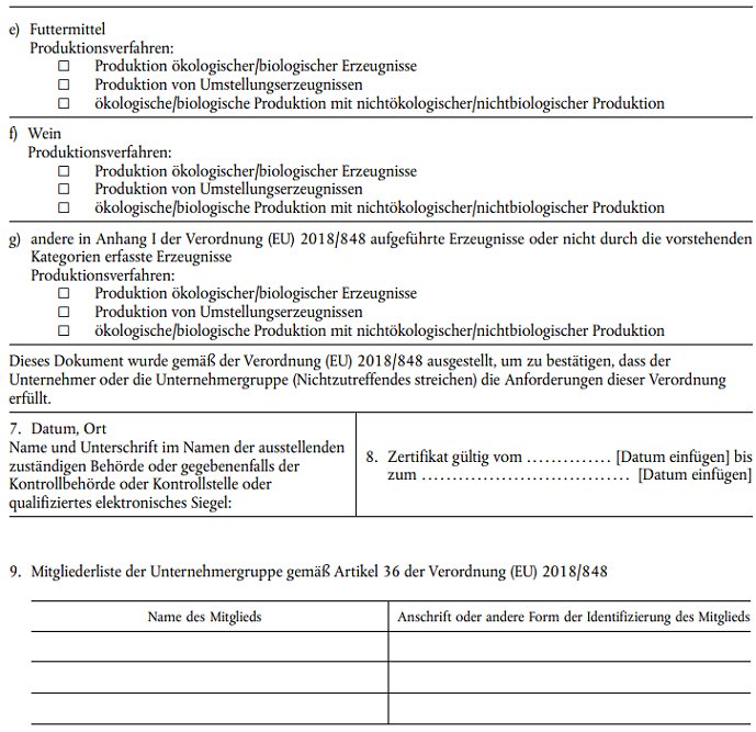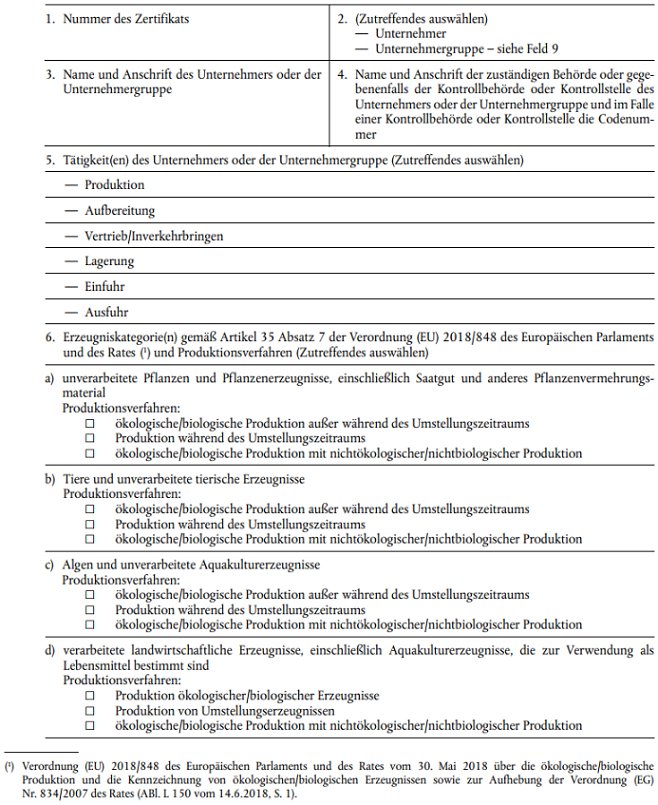 Zertifikat gemäß Artikel 35 Absatz 1 der Verordnung (EU) 2018/848 über die ökologische/biologische Produktion und die Kennzeichnung von ökologischen/biologischen Erzeugnissen