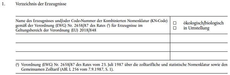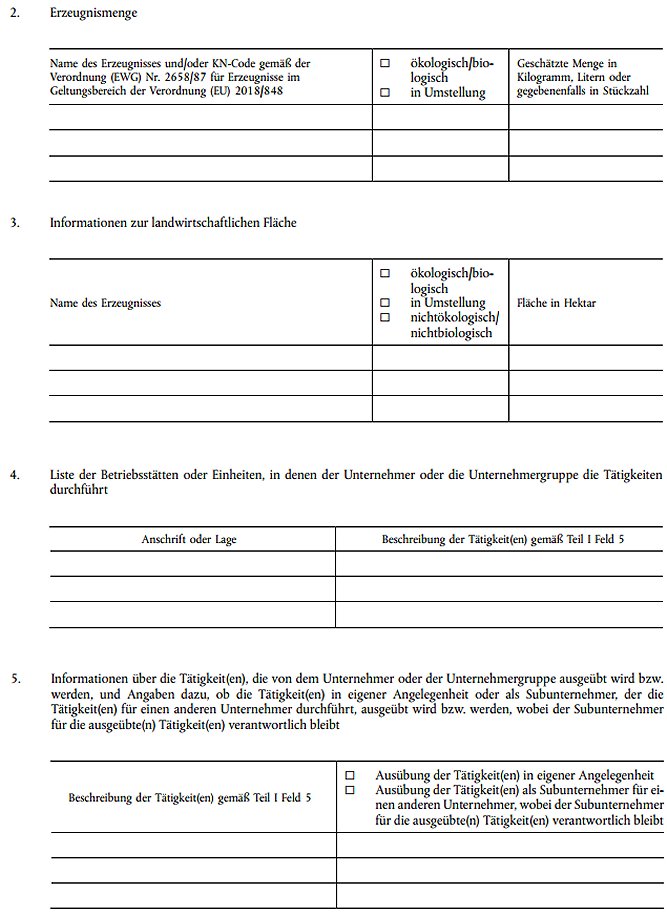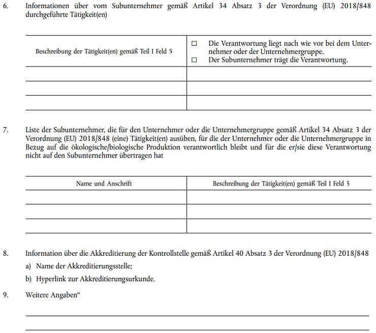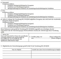Eine Angabe oder mehrere Angaben, die auf Beschluss der zuständigen Behörde oder gegebenenfalls der Kontrollbehörde oder Kontrollstelle zu ergänzen ist bzw. sind, die das Zertifikat gemäß Artikel 35 der Verordnung (EU) 2018/848 für den Unternehmer oder die Unternehmergruppe ausstellt.