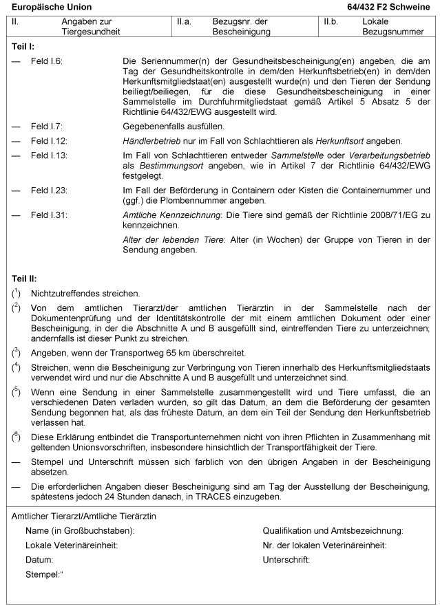Muster 2 Tiergesundheitsbescheinigung für Zucht-/Nutz-eSchlachtschweine