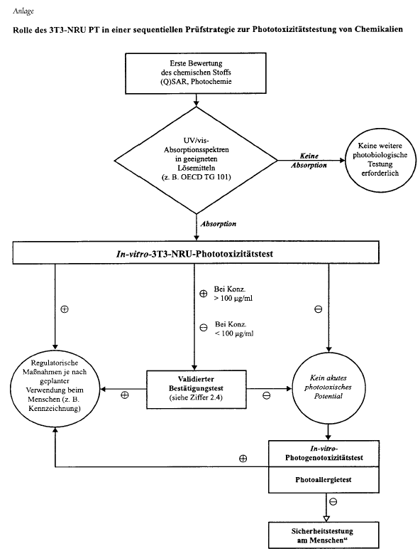 Eine sequentielle Prüfstrategie zur Phototoxizitätstestung mit Chemikalien ist in Anlage 1 enthalten.