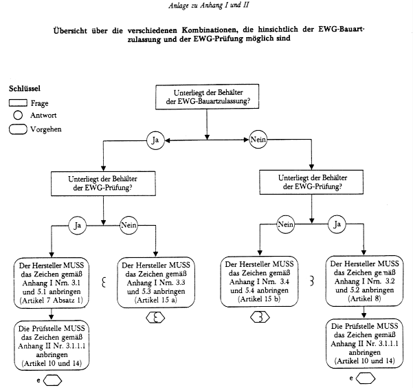 3.3.1. Das Zeichen für die vollständige EWG-Prüfung wird an der hierfür vorgesehenen Stelle des vollständig geprüften und als mit den EWG-Vorschriften übereinstimmend anerkannten Druckbehälters angebracht.