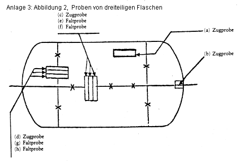 3.1.1.2. Alle mechanischen Prüfungen zur Kontrolle der Eigenschaften des Grundwerkstoffs und der Schweißnähte der drucktragenden Gasflaschenwandung werden an Werkstoffproben vorgenommen, die fertigen Flaschen entnommen sind.