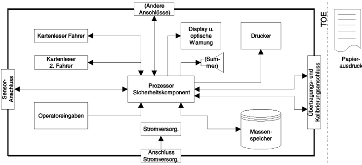 DEX_205 Die FE exportiert die Daten mit den zugehörigen Sicherheitsattributen an die Kontrollgerätkarten, so dass die Karte die Integrität und Authentizität der Daten prüfen kann.