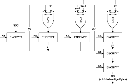 CSM_015 Triple-DES-Schlüssel haben die Form (Ka, Kb, Ka), wobei Ka und Kb unabhängige Schlüssel mit einer Länge von 64 Bit sind. Es wird kein Paritätsfehler-Erkennungsbit gesetzt.