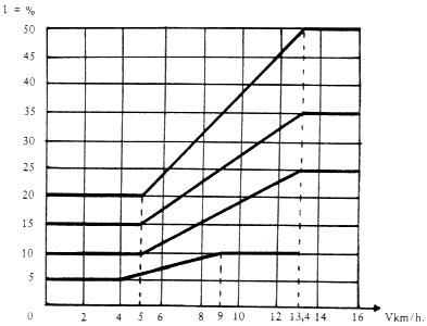 | B | Schlepper mit 1 oder 2 gebremsten Rädern | 13 % | 2,6 V % | 35 % |