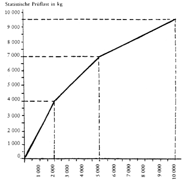 Das Schutzdach in sich muß in der Lage sein, 1 Minute lang eine statische steife Prüflast zu tragen, die über die Fläche des oberen Teiles des Hauptrahmens gleichmäßig verteilt ist und deren Größe der folgenden Tabelle und dem folgenden Diagramm entspricht: