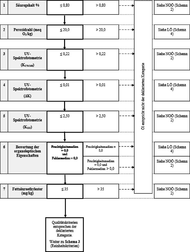 Hinsichtlich des Gehalts an halogenierten Lösungsmitteln gelten für alle Kategorien von Olivenölen folgende Grenzwerte: