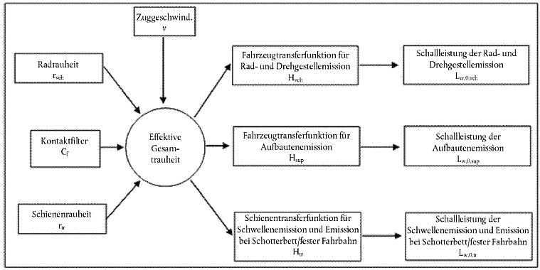 Die Schallemission eines Verkehrsflusses wird durch eine Linienquelle dargestellt, die durch ihre gerichtete Schallleistung je Meter pro Frequenz gekennzeichnet ist. Dies entspricht der Summe der Schallemission der einzelnen Fahrzeuge im Verkehrsfluss unter Berücksichtigung der von den Fahrzeugen im untersuchten Straßenabschnitt verbrachten Zeit. Die Darstellung des einzelnen Fahrzeugs im Fluss erfordert die Anwendung eines Verkehrsflussmodells.
