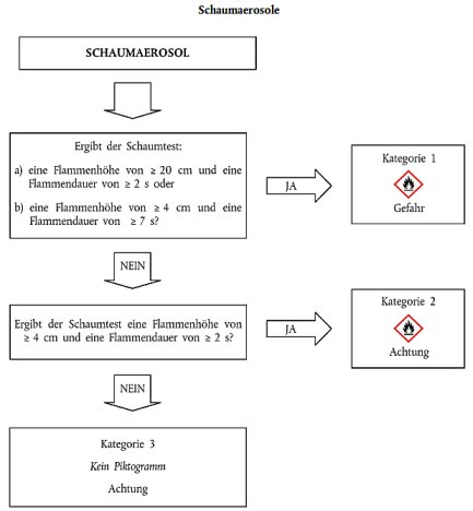 Für die Einstufung von in den Kapiteln 3.1, 3.2, 3.3, 3.4, 3.8 und 3.9 behandelten Gemischen gilt, dass ein Gemisch in Form eines Aerosols in dieselbe Gefahrenkategorie wie die nichtaerosole Form des Gemisches einzustufen ist, sofern das zugefügte Treibgas sich beim Sprühen nicht auf die gefährlichen Eigenschaften des Gemisches auswirkt und wissenschaftliche Nachweise verfügbar sind, die belegen, dass die aerosole Form nicht gefährlicher ist als die nichtaerosole Form.