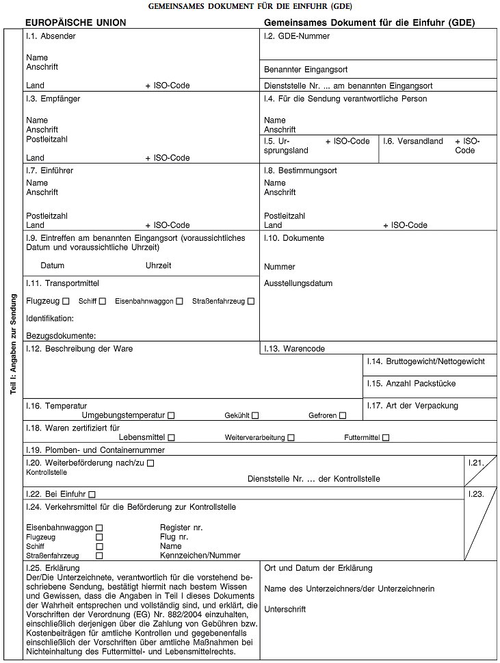 | Gemeinsames Dokument für die Einfuhr (GDE) | Anhang II1014 |