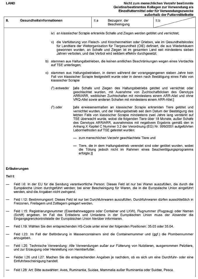 1. Häute und Felle von Huftieren, die gemäß der Entscheidung eines Betreibers für andere Zwecke als zum menschlichen Verzehr bestimmt sind und den Anforderungen der Verordnung (EG) Nr. 853/2004 an Rohmaterial für Gelatine oder Kollagen entsprechen, die zur Verwendung in Lebensmitteln bestimmt sind, dürfen gemäß der vorliegenden Verordnung ohne Einschränkung in Verkehr gebracht werden.
