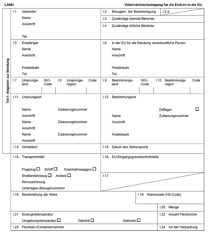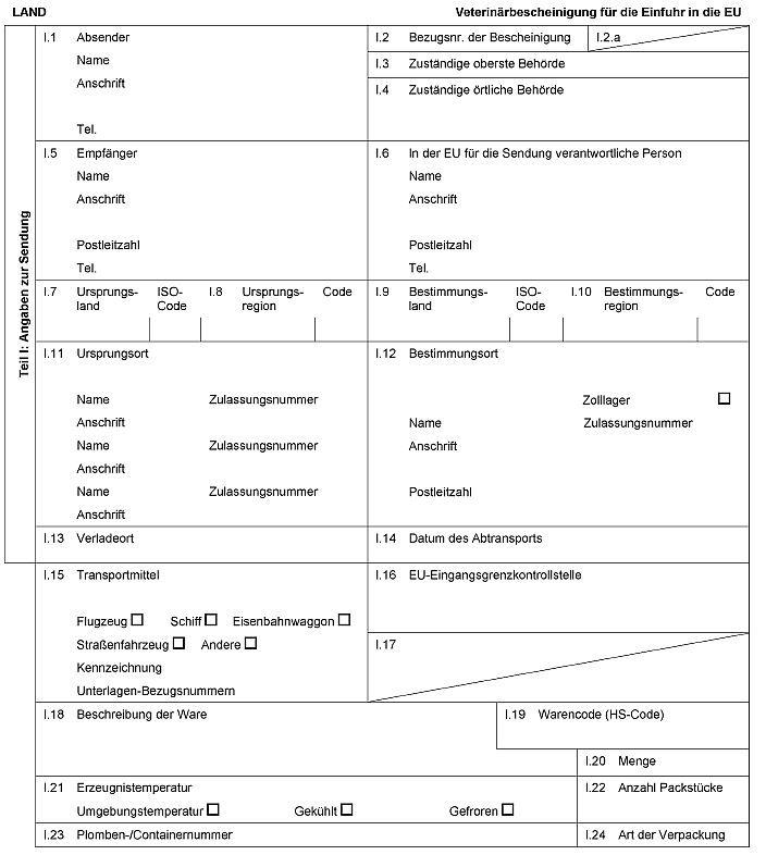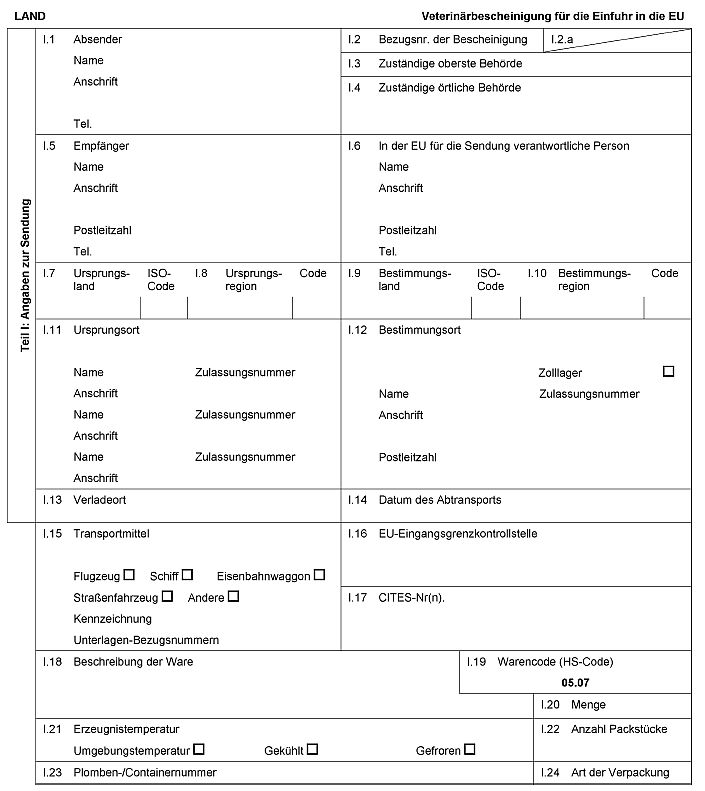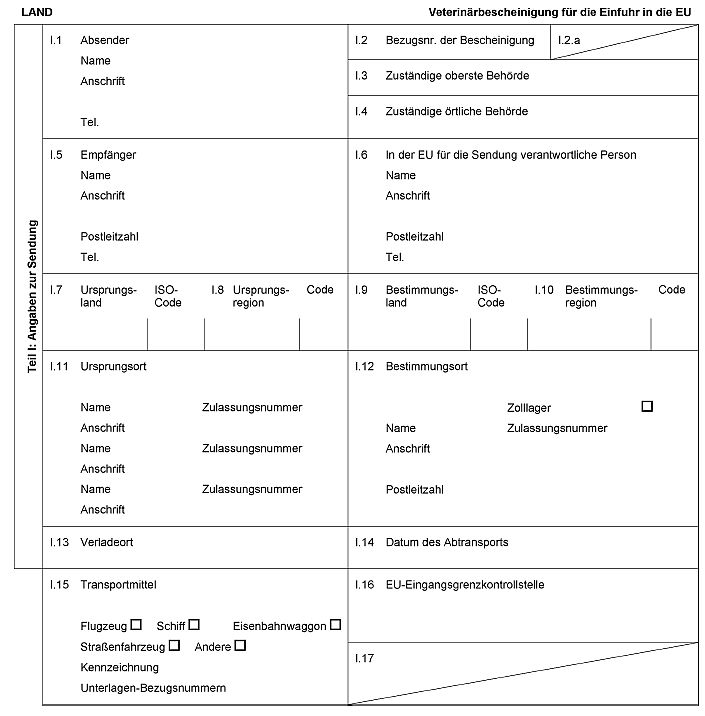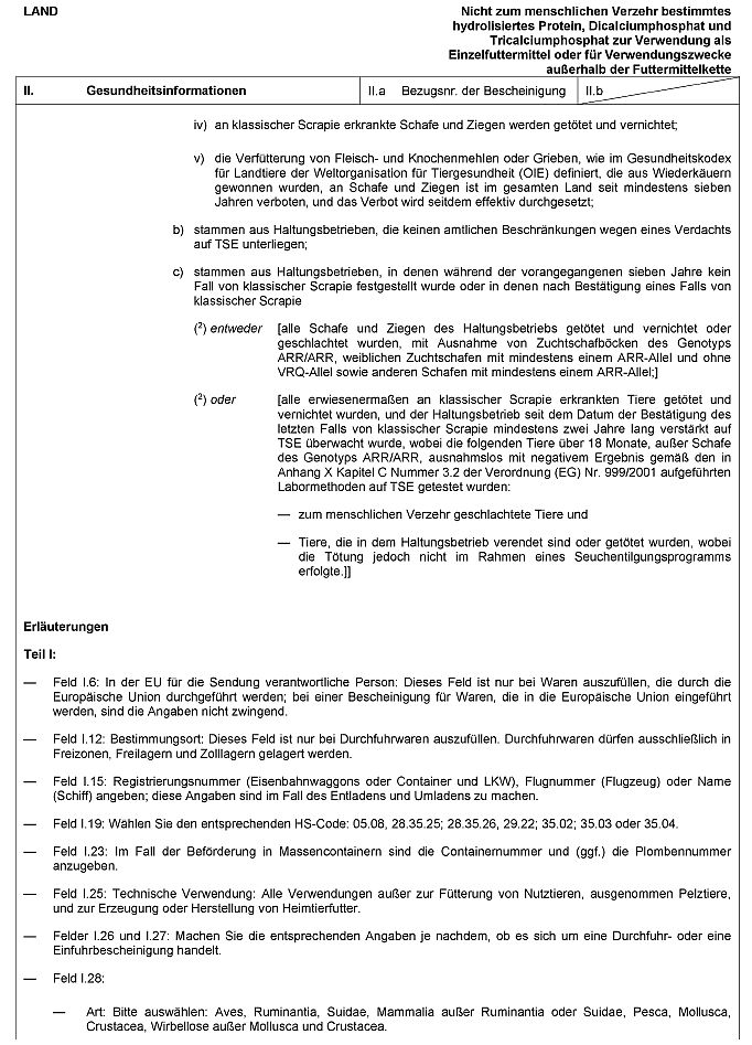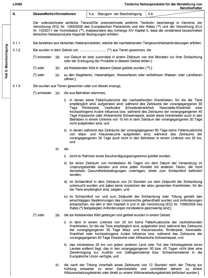 Die Unternehmer informieren unter Verwendung des folgenden Formats in TRACES die zuständige Behörde des Ursprungsmitgliedstaats und beantragen bei der zuständigen Behörde des Bestimmungsmitgliedstaats die Genehmigung des Versands von tierischen Nebenprodukten und von ihren Folgeprodukten gemäß Artikel 48 Absatz 1 der Verordnung (EG) Nr. 1069/2009 sowie von zur Entgiftung bestimmtem Fischöl oder Fischmehl aus Material der Kategorie 3: