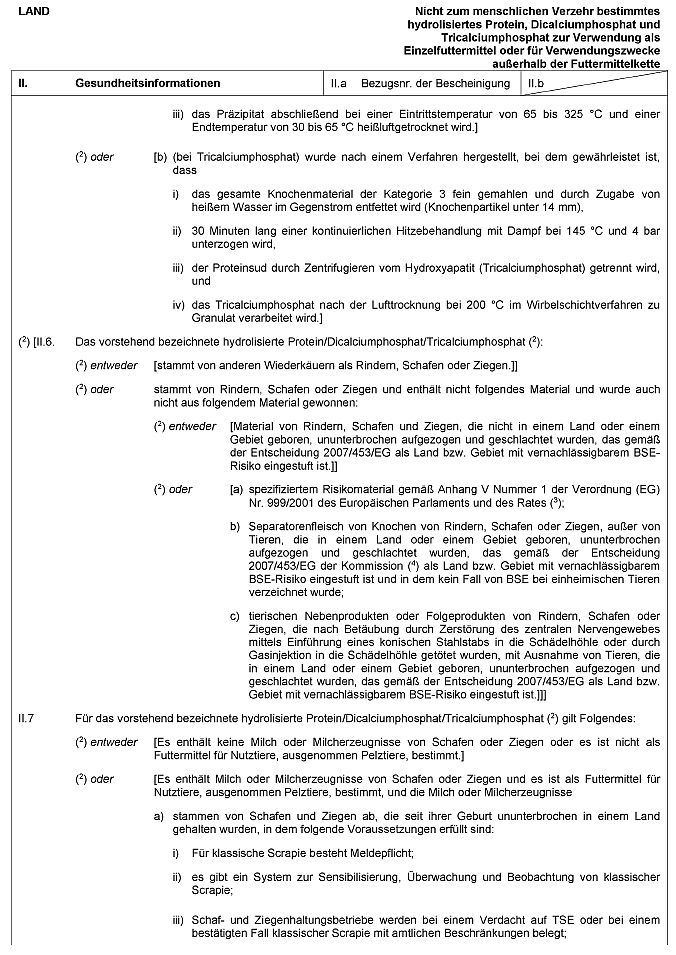 Außerdem erkläre ich, dass das Produkt weder spezifiziertes Risikomaterial im Sinne des Anhangs V der Verordnung (EG) Nr. 999/2001 noch Separatorenfleisch von Knochen von Rindern, Schafen oder Zeigen enthält und auch nicht aus solchem Material oder solchem Fleisch gewonnen wurde.