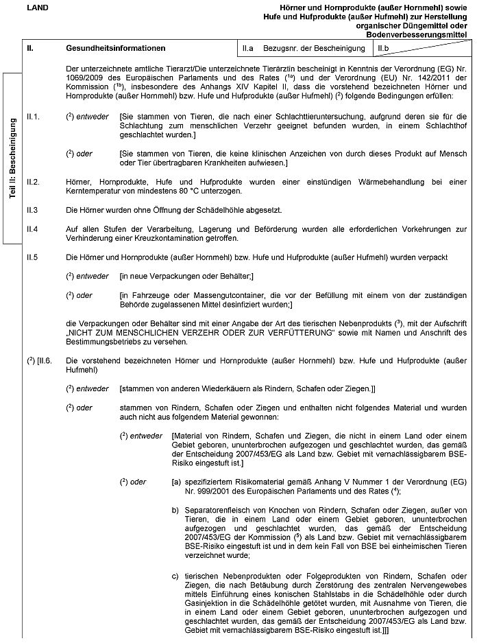 für die Einfuhr in oder die Durchfuhr durch 2 die Europäische Union von Hörnern und Hornprodukten (außer Hornmehl) sowie Hufen und Hufprodukten (außer Hufmehl), die zur Herstellung organischer Düngemittel oder Bodenverbesserungsmittel bestimmt sind