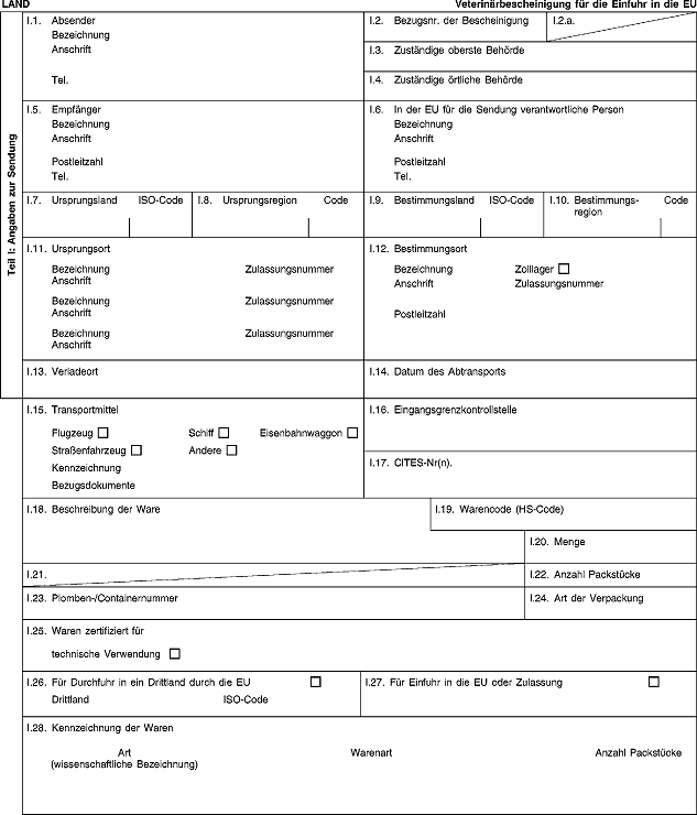 Bezugsnummer wie im Gemeinsamen Veterinärdokument für die Einfuhr (GVDE) gemäß Anhang III der Verordnung (EG) Nr. 136/2004 der Kommission angegeben: