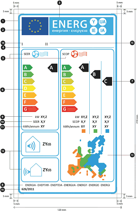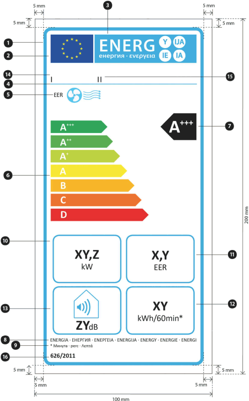 (13) In dieser Verordnung sollten eine einheitliche Gestaltung und einheitliche Anforderungen an die Angaben auf Etiketten für Luftkonditionierer festgelegt werden.