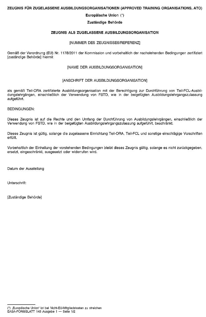 d) Abweichend von Buchstabe c kann eine Organisation, der eine Genehmigung nach Teilabschnitt ATO von Anhang VII (Teil-ORA) erteilt wurde, zusammen mit der Erklärung auch nur die Referenznummer des bereits genehmigten Ausbildungshandbuchs angeben.