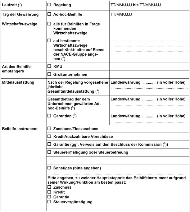 | Informationen über nach dieser Verordnung freigestellte staatliche Beihilfen Übermittlung über die IT-Anwendung der Kommission nach Artikel 11 | Anhang II |