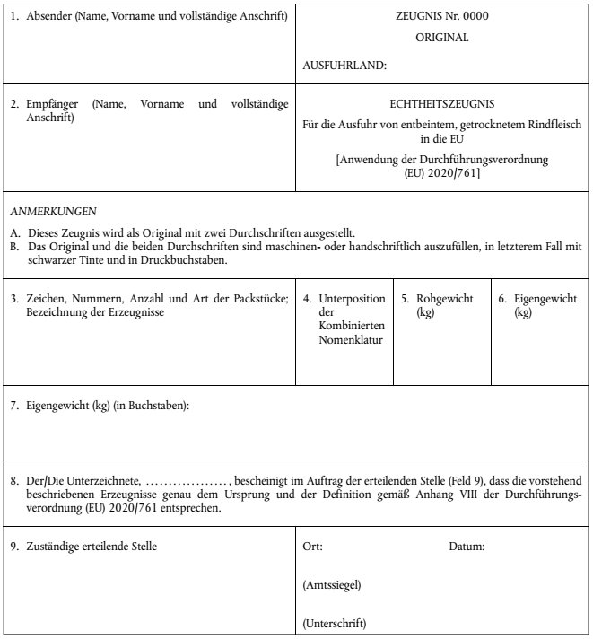 | Nachweis für den Handel | Gemäß Absatz 2 Buchstabe e der Delegierten Verordnung (EU) 2020/760 |