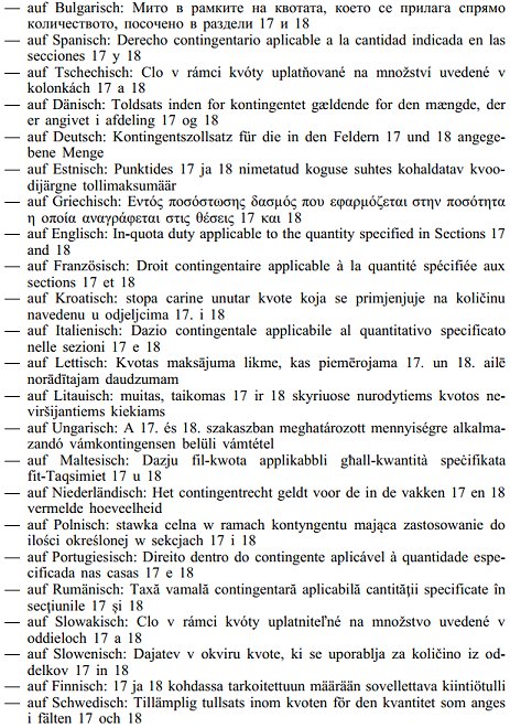 | Zollkontingentsteilzeiträume | Nein | |||||||||||||||||||||||||||