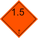 | (Nr. 1) Unterklassen 1.1, 1.2 und 1.3 Symbol (explodierende Bombe): schwarz auf orangefarbenem Grund; Ziffer "1 " in der unteren Ecke |