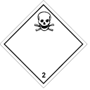 | (Nr. 2.3) Giftige Gase Symbol (Totenkopf mit gekreuzten Gebeinen): schwarz auf weißem Grund; Ziffer "2" in der unteren Ecke |