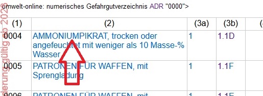 | Übersicht der gefährlichen Güter in UN-numerischer Reihenfolge: | |||||||||||