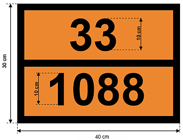5.3.2.2.2 Die Nummer zur Kennzeichnung der Gefahr und die UN-Nummer bestehen aus schwarzen Ziffern mit einer Zeichenhöhe von 100 mm und einer Strichbreite von 15 mm. Die Nummer zur Kennzeichnung der Gefahr muss im oberen Teil, die UN-Nummer im unteren Teil der Tafel angegeben sein; sie müssen durch eine waagrechte schwarze Linie mit einer Strichbreite von 15 mm in der Mitte der Tafel getrennt sein (siehe Absatz 5.3.2.2.3).