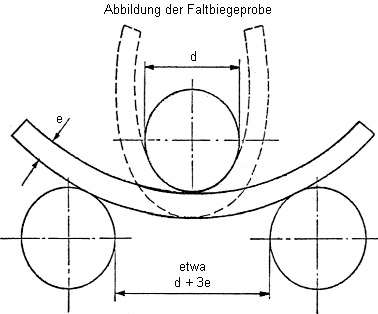 | Faltbiegeprobe (Durchmesser des Biegestempels | ||||