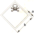 (Totenkopf mit gekreuzten Gebeinen, schwarz auf weißem Grund): a = 5 mm; b = Versandstück 100 mm, Fahrzeuge 250 mm mindestens |