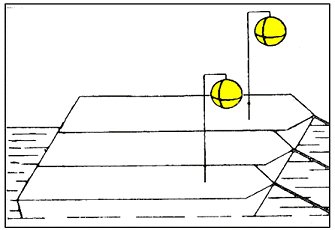 | Licht von allen Seiten sichtbar | Licht von über einen beschränkten Horizontbogen sichtbar | Funkellicht | Flagge oder Tafel |