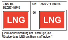 " § 2.06 Kennzeichnung der Fahrzeuge, die Flüssigerdgas (LNG) als Brennstoff nutzen (Anlage 3: Bild 66)