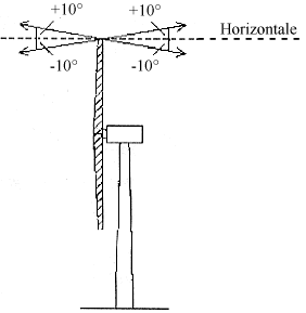 Die Lichtstärke eines senkrecht nach oben stehenden Rotorblattes muss mindestens 10 cd betragen, und zwar in den nachstehenden Winkelbereichen.