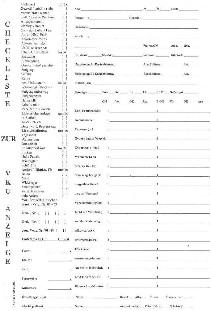 Vollerfassung bei Unfall mit schwerwiegendem Sachschaden4, sonst reduzierte Erfassung |