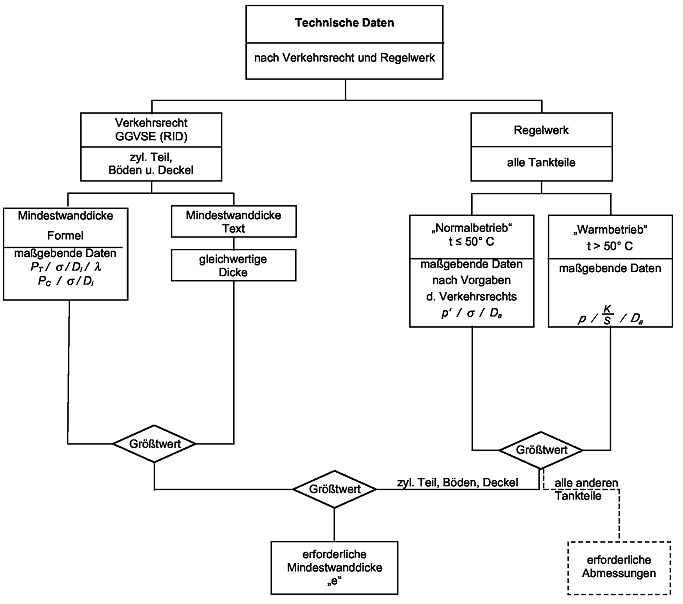 | Tankfahrzeuge/Aufsetztanks/Batteriefahrzeuge Berechnung der Mindestwanddicke (schematisch) |