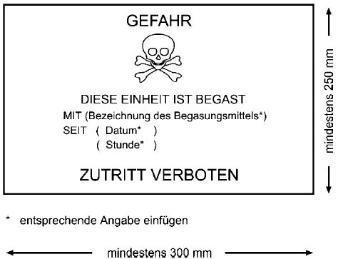 (5) Der IMDG Code schreibt vor, dass bedeckte Beförderungseinheiten, die mit Gütern unter Fumigation beladen sind, deutlich das an einer für Personen, die in die Beförderungseinheit einsteigen wollen, leicht erblickbaren Stelle angebrachte Zeichen "Fumigation" führen müssen (siehe B.4 hierunter).