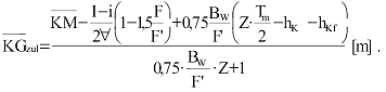 Dies gilt bis zu Krängungswinkeln von 10° oder bis zu einem Krängungswinkel, bei dem Seite Deck eintaucht oder bei dem der Boden austaucht. Dabei ist der kleinere Winkel ausschlaggebend. Bei schräg verlaufenden Seitenwänden gilt die Formel bis zu Krängungswinkeln von 5°; im Übrigen gelten die Randbedingungen nach den Nummern 3 und 4.1 bis 4.6.