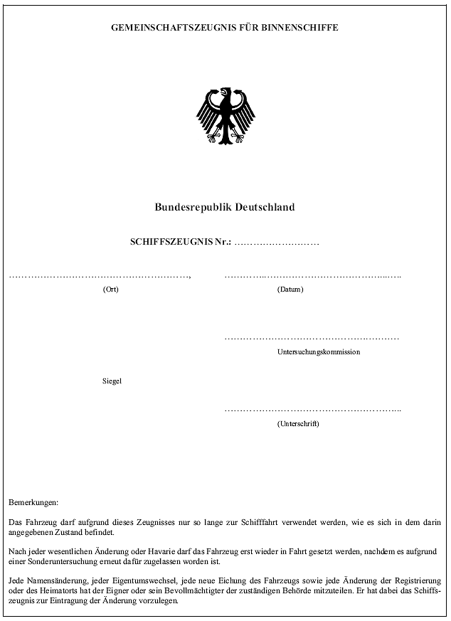 Muster des Gemeinschaftszeugnisses für Binnenschiffe