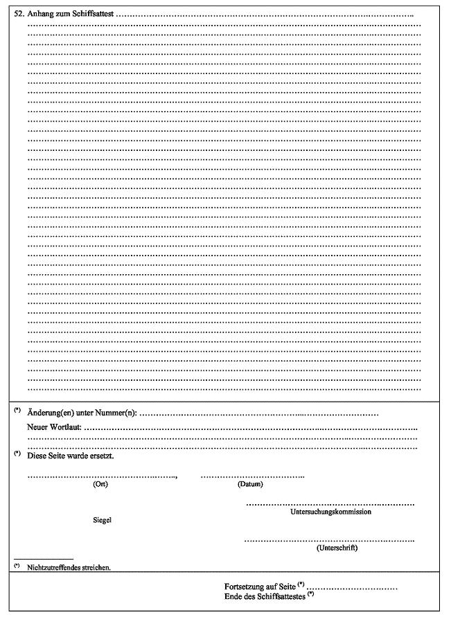 Anlage zum Gemeinschaftszeugnis für Binnenschiffe (*) / Schiffsattest (*) Nr. .....................................