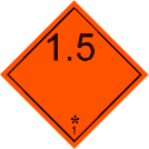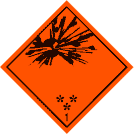 | ( Nr. 1) Unterklassen 1.1, 1.2 und 1.3 Symbol (explodierende Bombe): schwarz auf orangefarbenem Grund; Ziffer "1" in der unteren Ecke |