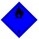 ( Nr. 4.3) Klasse 4.3 Stoffe, die in Berührung mit Wasser entzündbare Gase entwickeln Symbol (Flamme) schwarz oder weiß auf blauem Grund; Ziffer 4 in der unteren Ecke |